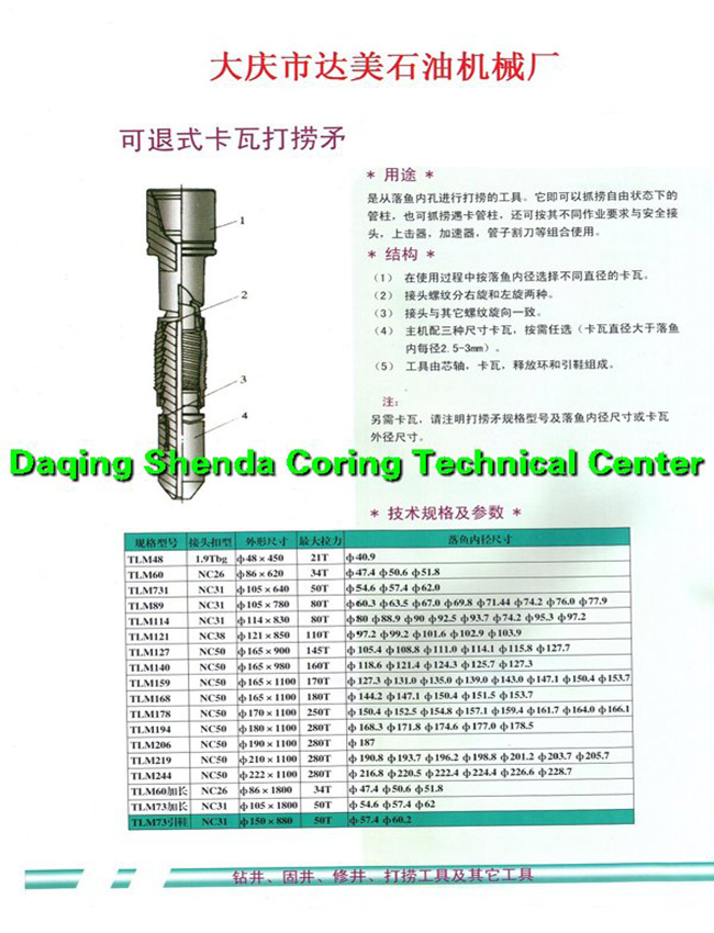 可退式卡瓦打撈矛